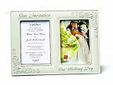 This porcelain bisque invitation photo frame has two 5-Inch by 7-inch openings- one to hold your wedding invitation and one for your wedding day picture. A great keepsake you'll treasure forever.
